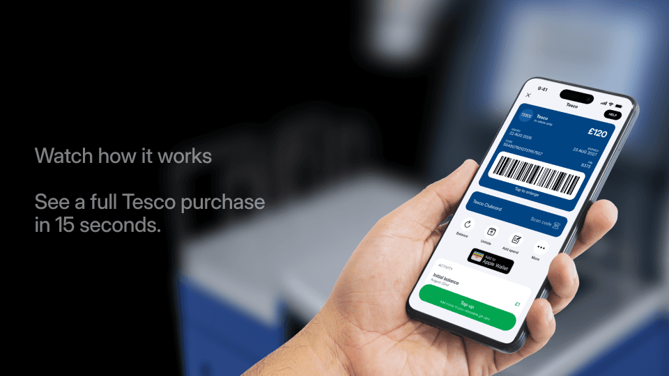 That's fine — gift cards keep their balance until you use it all up, just like a debit card. A few brands (like Tesco) are even reloadable, so you can top up the same card for your next shop. Any unused balance stays on the card until you spend it.